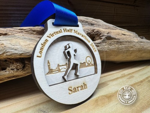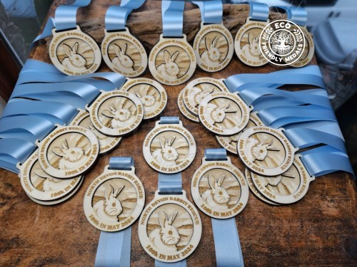 Medals Are Laser Cut Using 3-4mm Plywood. We Use No Plastics In Our Medals Or Lanyards, For This Reason All Our Lanyards Are Made With Biodegradable Acetate Ribbon And Are Sewn Together Rather Than Using Plastic Clips, If You Would Prefer Clips This Is Something We Can Discuss Through Messages.